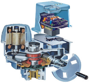 DREHMO electric actuator main components: enclosed motor, eccentric planetary gear mechanism, plugin electrical junction box, handwheel operating mechanism without clutch, combined sensor (torque, stroke measurement), electrical integrated control unit. All planetary gear components are installed around the output and are in constant engagement with several teeth at any time. Unlike traditional spur gears and worm gear structures, it has a compact structure, high mechanical efficiency (70~80) low friction, and a longer service life.